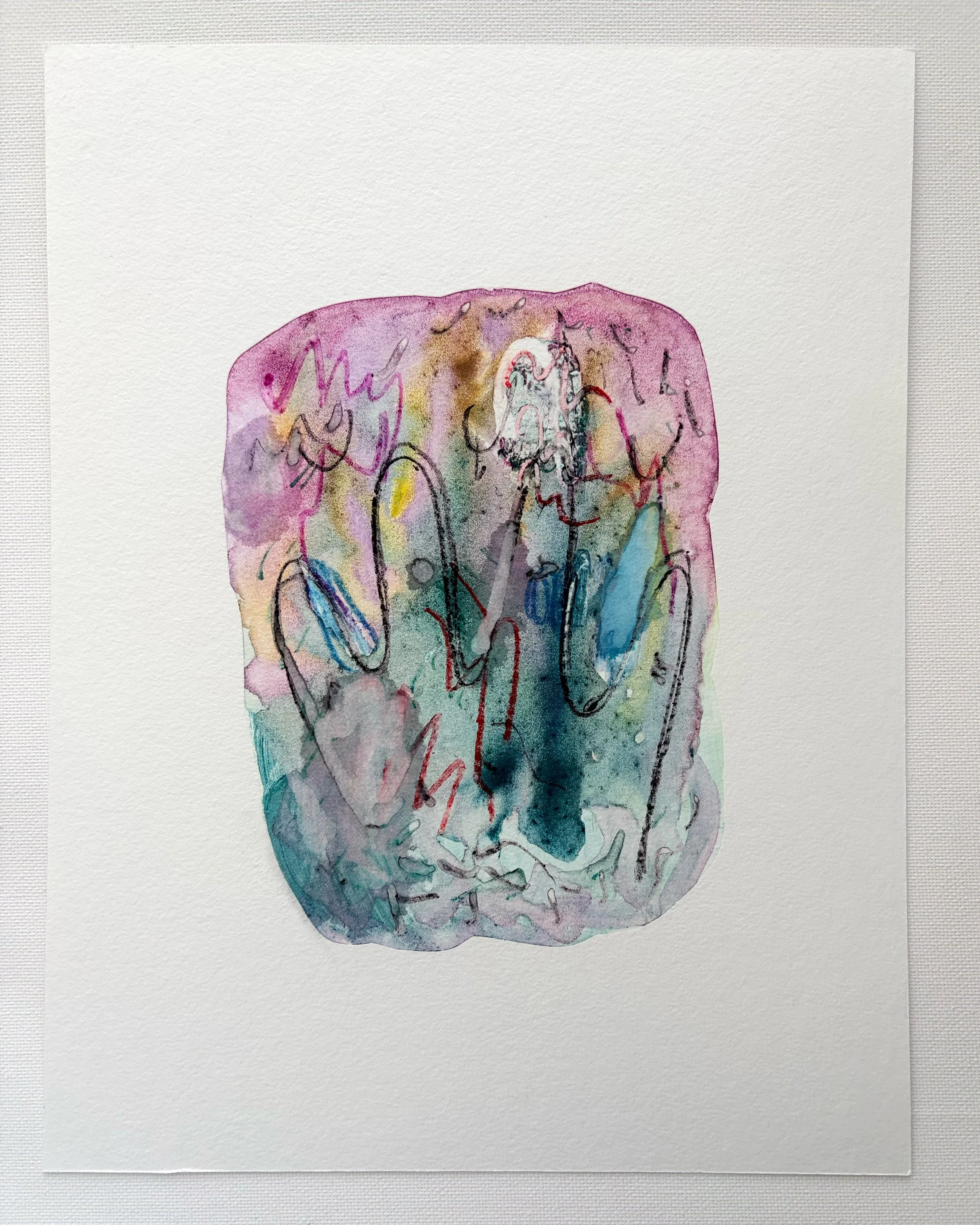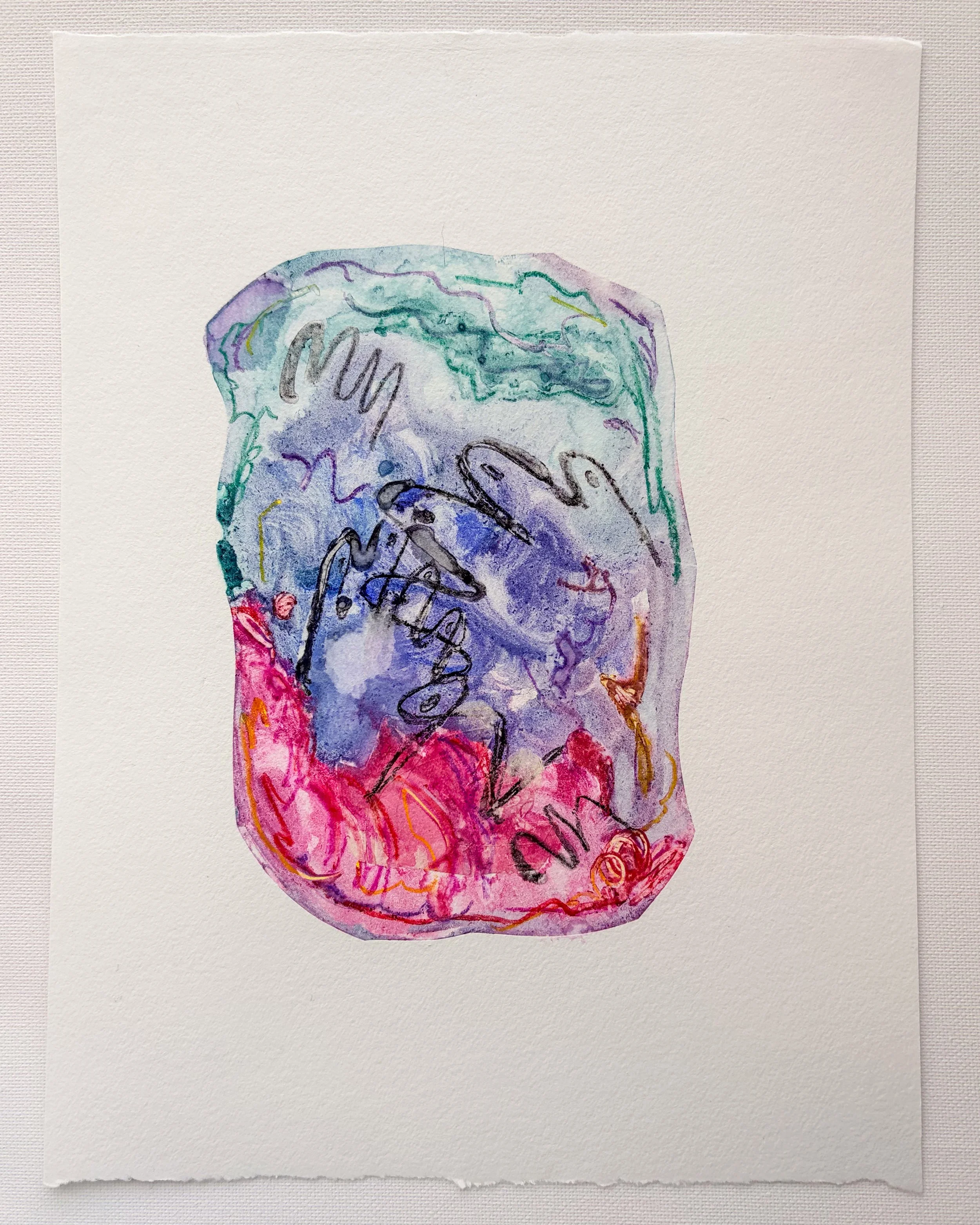 Statement: Subluxations is a series of whimsical monotypes that celebrate the strange beauty of hypermobile bodies. Drawn on sheets of Yupo with watercolor wax crayons and inks, they trace hands and joints that bend and stretch a little too far, letting things slip out of place.